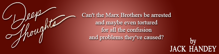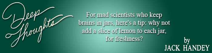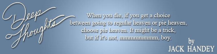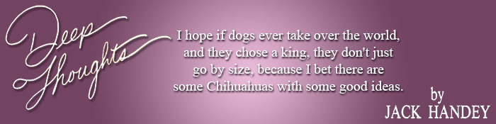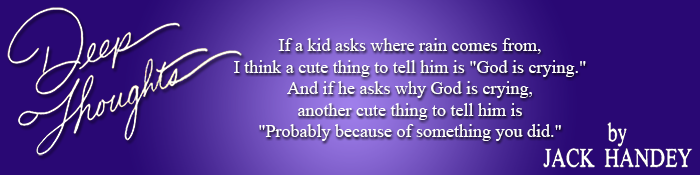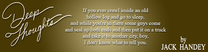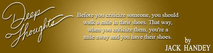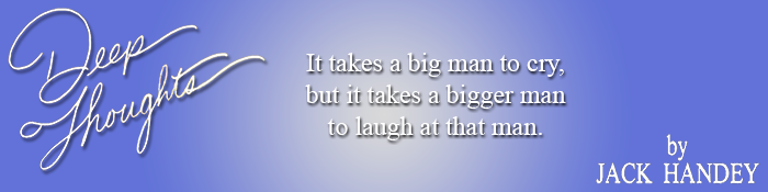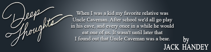 If you ever watched SNL back when it was still funny, you no doubt saw the "Deep Thoughts... by Jack Handey" bit. Well here are 15 of my favorites in siggy form just for you. If you'd like to use all of these in a rotating siggy, feel free to use the following code in your Signature (found under the Forums link):